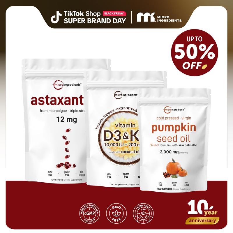 Discover the unparalleled quality and effectiveness of our unique bundle, combining premium pumpkin seed oil and powerful vitamin D3 + K2 softgels to empower your hair health and overall well-being like no other product on the market.